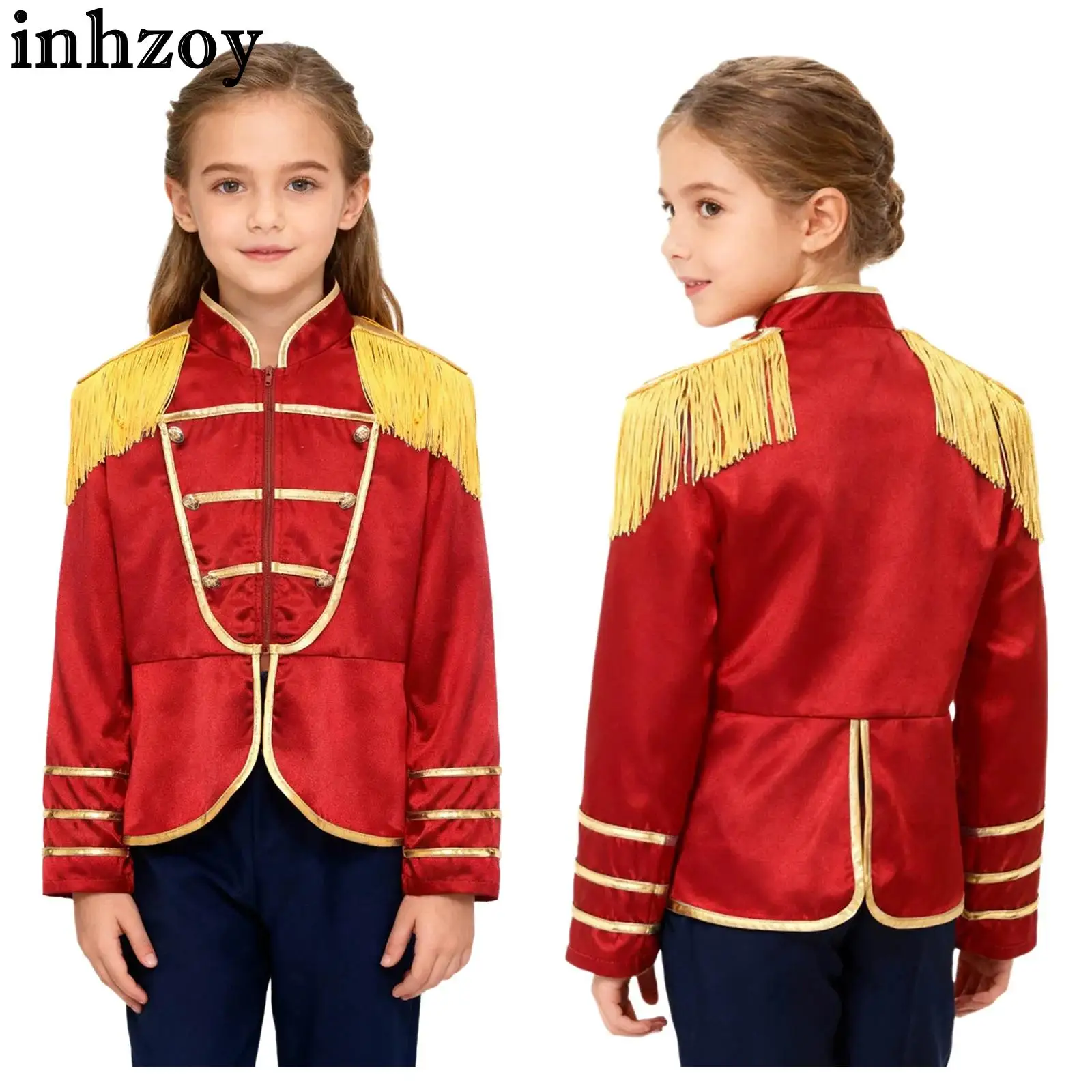 Chaqueta de banda de Rock para niños, abrigo de manga larga con cremallera, fiesta temática de Carnaval de Halloween, disfraz de Cosplay de circo de la Guardia de Honor principal del tambor
