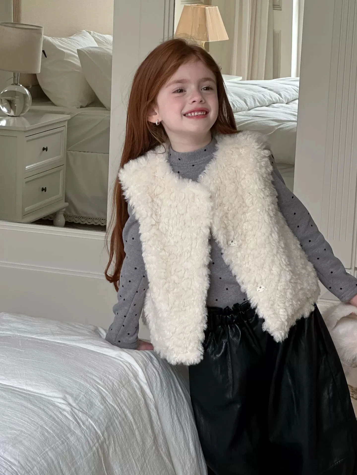 Chaleco peludo para niñas, chaleco cálido de invierno para niñas, chaleco informal liso, sencillo y versátil, primavera y otoño, 2025