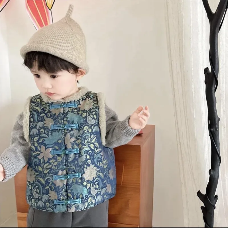 Ropa de invierno para niños, ropa de celebración de Año Nuevo Chino, chaleco sin mangas de estilo chino para niños, Top para regalos LI877, 2026