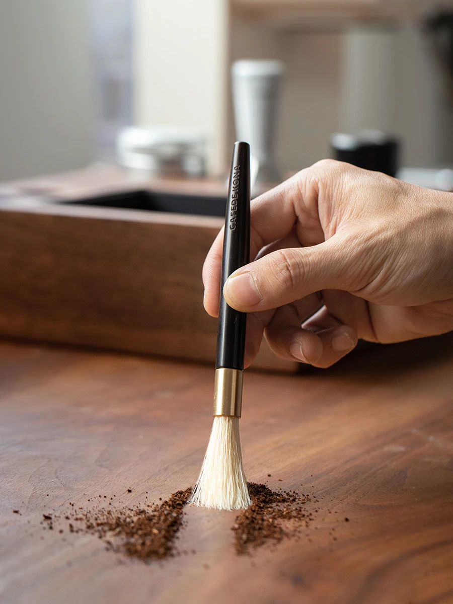 Cepillo de limpieza de cerdas de madera y cerdas de cerdo para máquinas de café, color morado claro