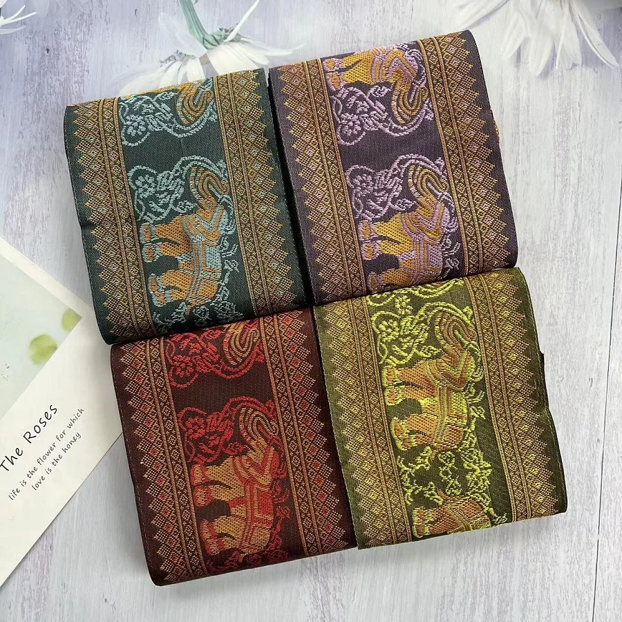 Cinta Jacquard de encaje étnico de 10 yardas, ropa étnica Dai, accesorios con patrón de elefante, Sh-9804, ancho aproximado de 10cm