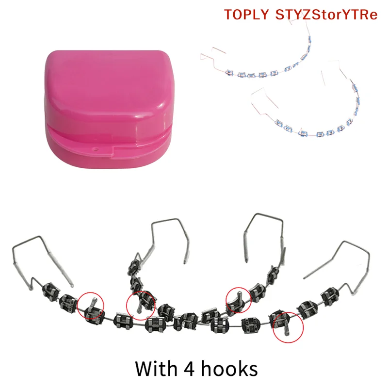 1 Par de Decoraciones Dentales Temporales en Caja con 4 Ganchos con Alambres Metálicos, Ligaduras de Metal Multicolor, Material Dental