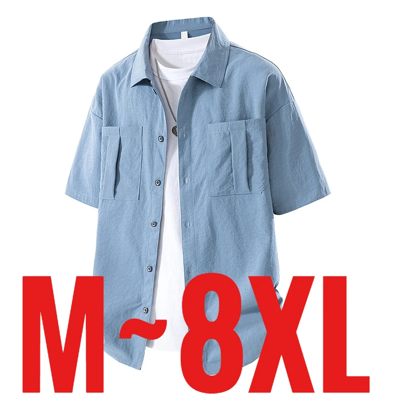 Camisas informales de gran tamaño para hombre, camisas de verano de manga corta, estilo coreano, talla grande 8XL, ropa de calle transpirable con bolsillo