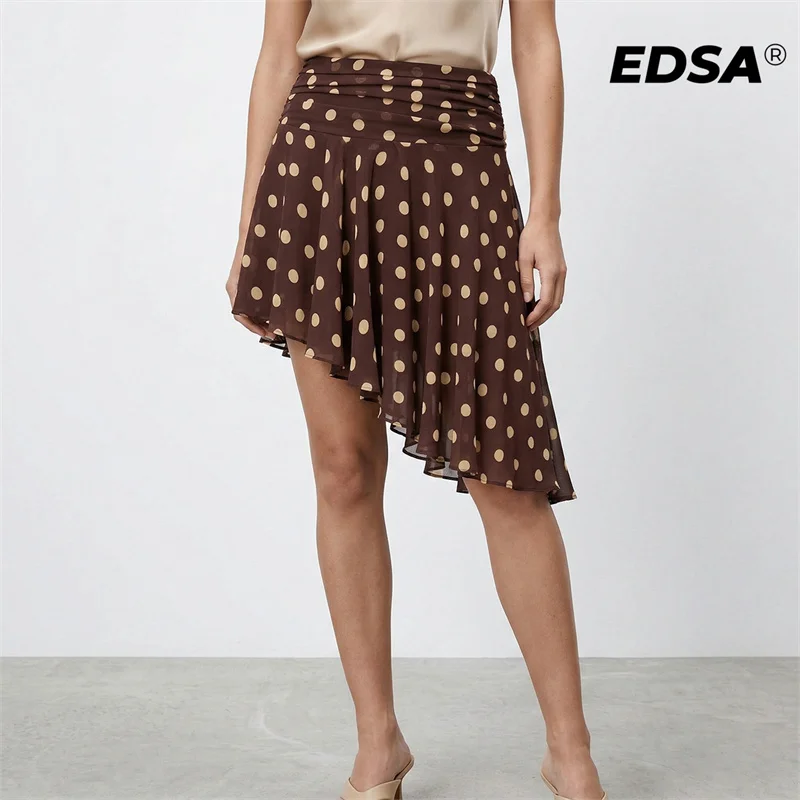 EDSA Falda midi asimétrica con lunares para mujer, falda larga plisada con cremallera lateral, primavera y verano, para fiesta, uso diario