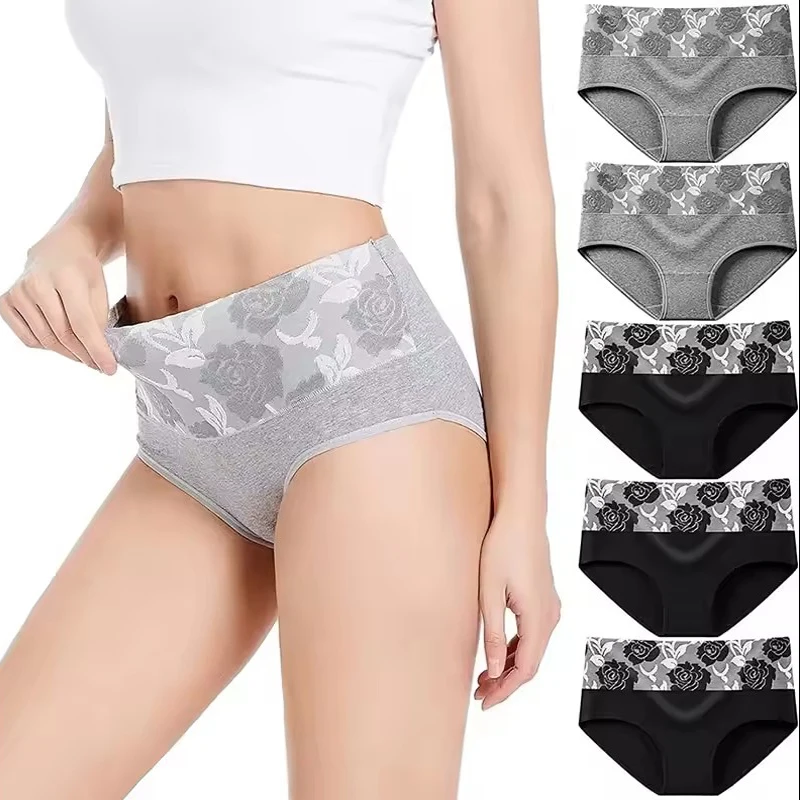 Paquete múltiple de 5 uds de calzoncillos cómodos de algodón para mujer, ropa interior de cintura alta, bragas de M-XXL para mujer, pantalones transpirables