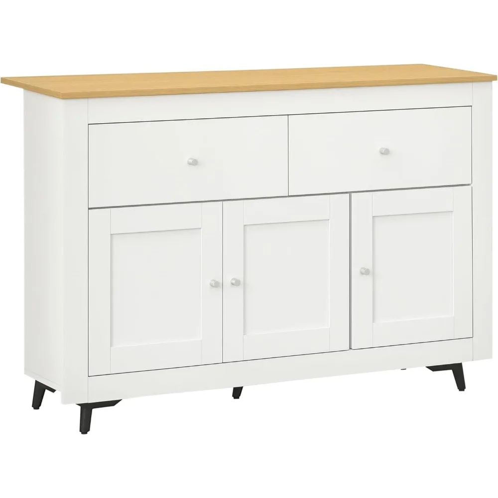 Aparador de Cocina Mueble Auxiliar de Cocina Mueble de TV con 2 Cajones 3 Puertas y Estante Ajustable para Comedor Salón 117x35