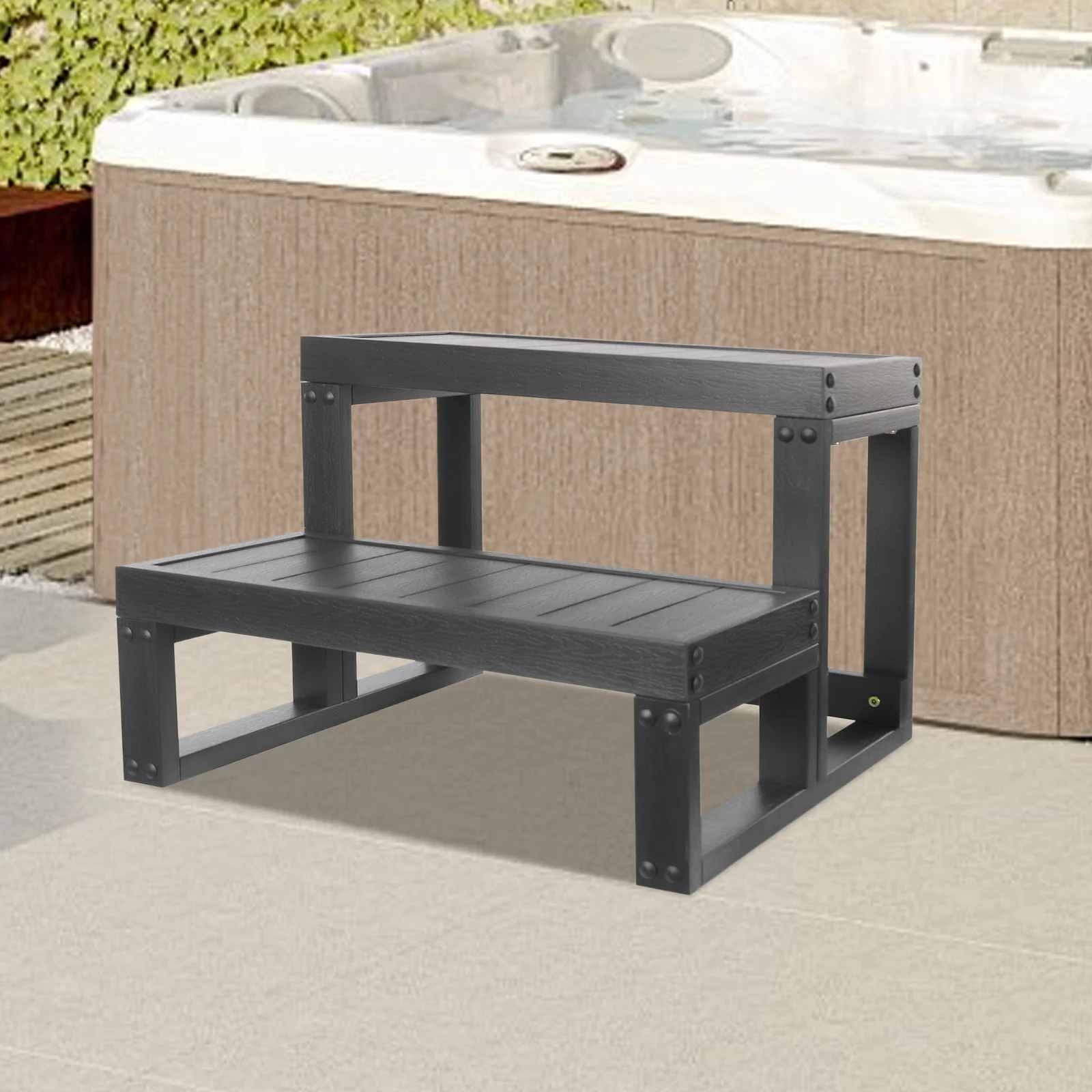 WPC Taburete para bañera de 2 escalones, escalera de spa antideslizante para bañera de hidromasaje, taburete de baño negro resistente para entrada y salida seguras