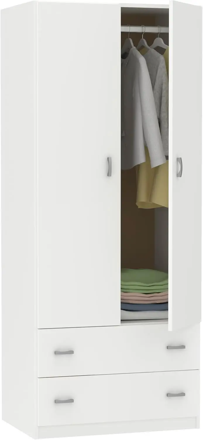 Armadio Cámara da Letto guardarropa 2 ante 2 cajones bianco 180x74x50cm móvil ausiliario moderno, Colección Tibet