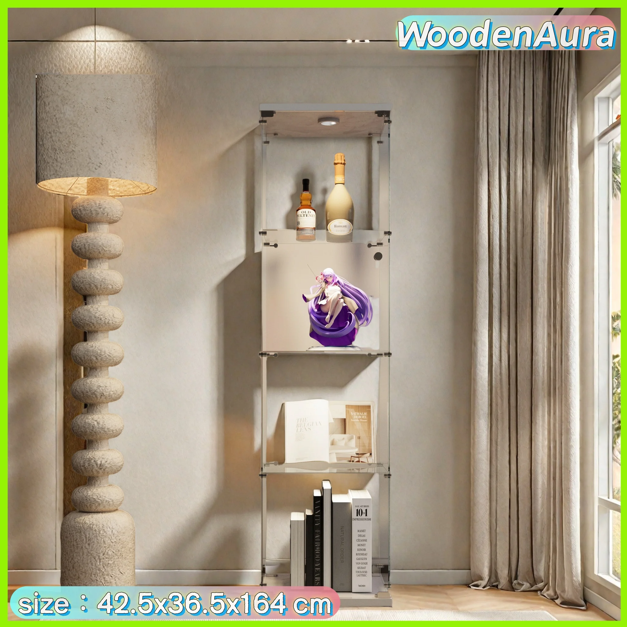 Vitrina de vidrio con LED, vitrina moderna de vidrio templado de 4 capas con 2 puertas, vitrina para salón, dormitorio