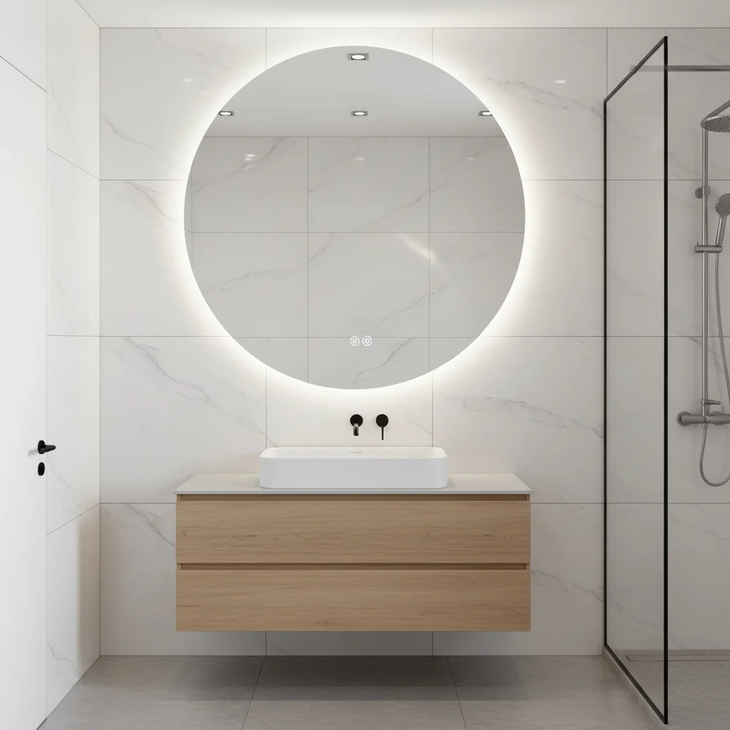 MINGZHE Espejo de baño LED redondo con control táctil, espejo moderno sin marco, temperatura de color ajustable, antivaho, 80x80 cm