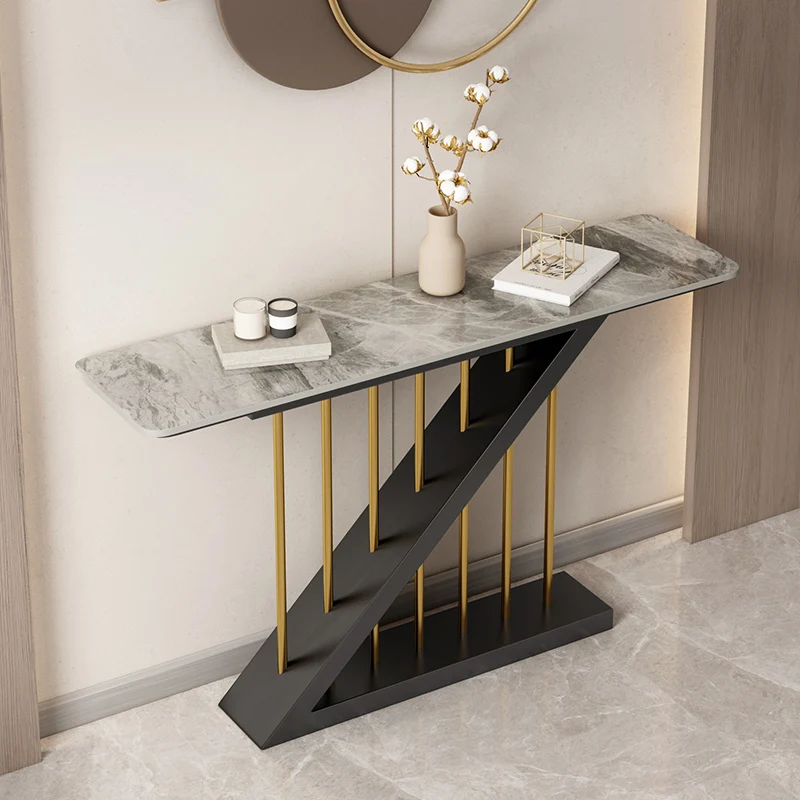 Losa de roca de lujo moderna, sencilla y ligera, mesa de vista final de losa de roca de entrada, pasillo doméstico contra la pared, hierro forjado italiano