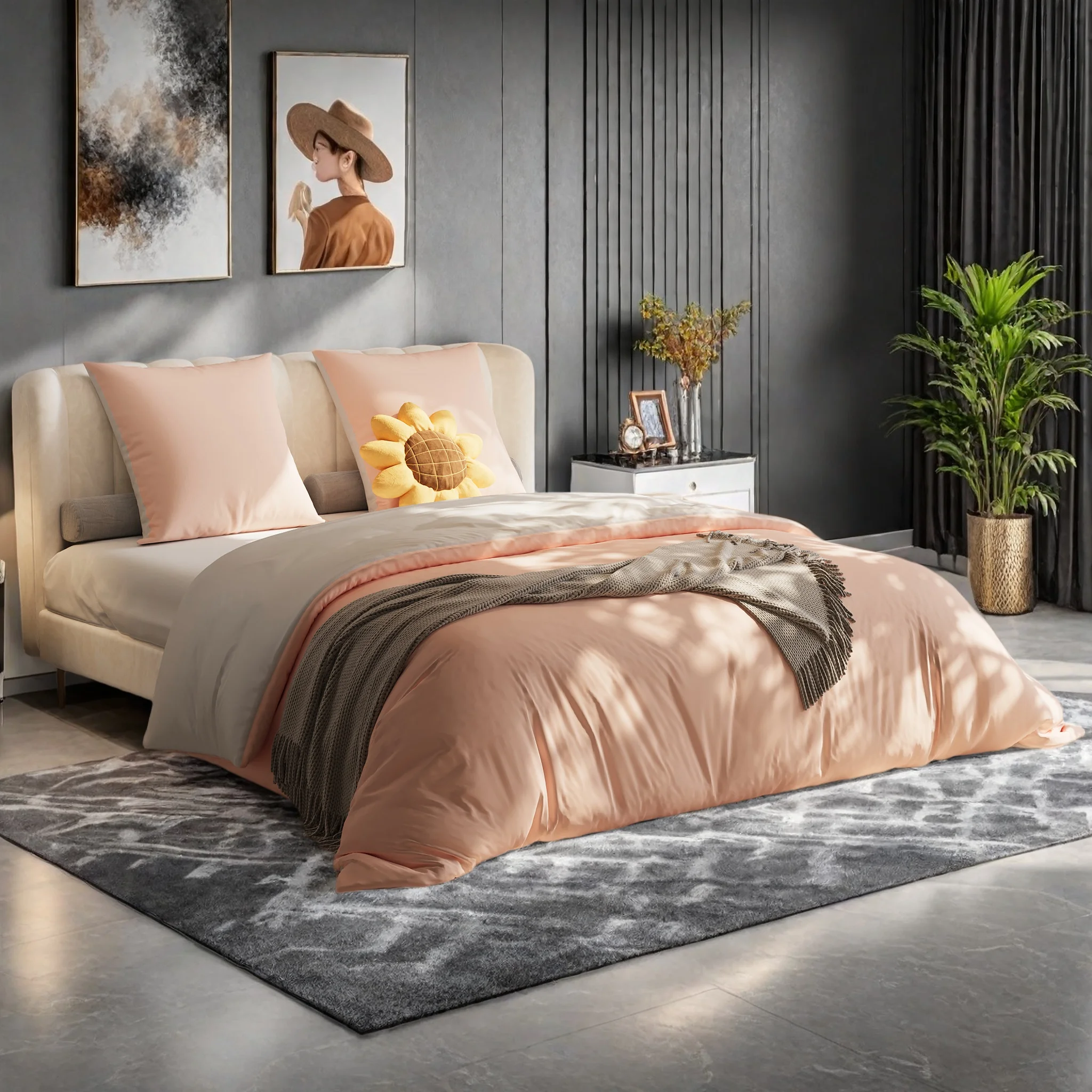 Juego de cama de 4 piezas, funda nórdica, sábanas y fundas de almohada, apto para cama de 140x200 cm, color rosa