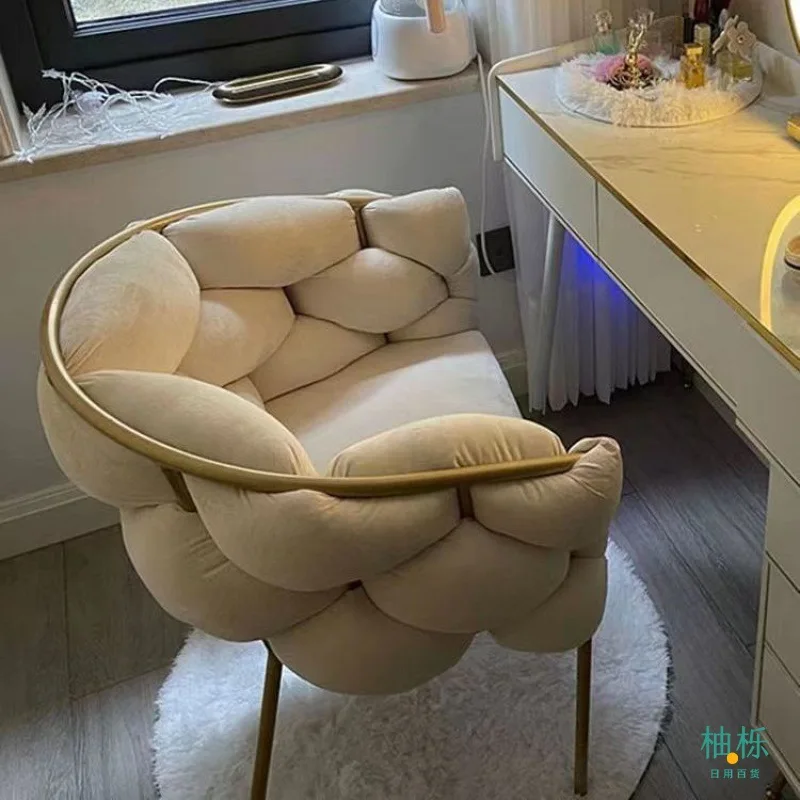 Silla de maquillaje roja de Internet para dormitorio femenino, taburete de lujo ligero, avanzado, moderno, tocador de uñas Simple