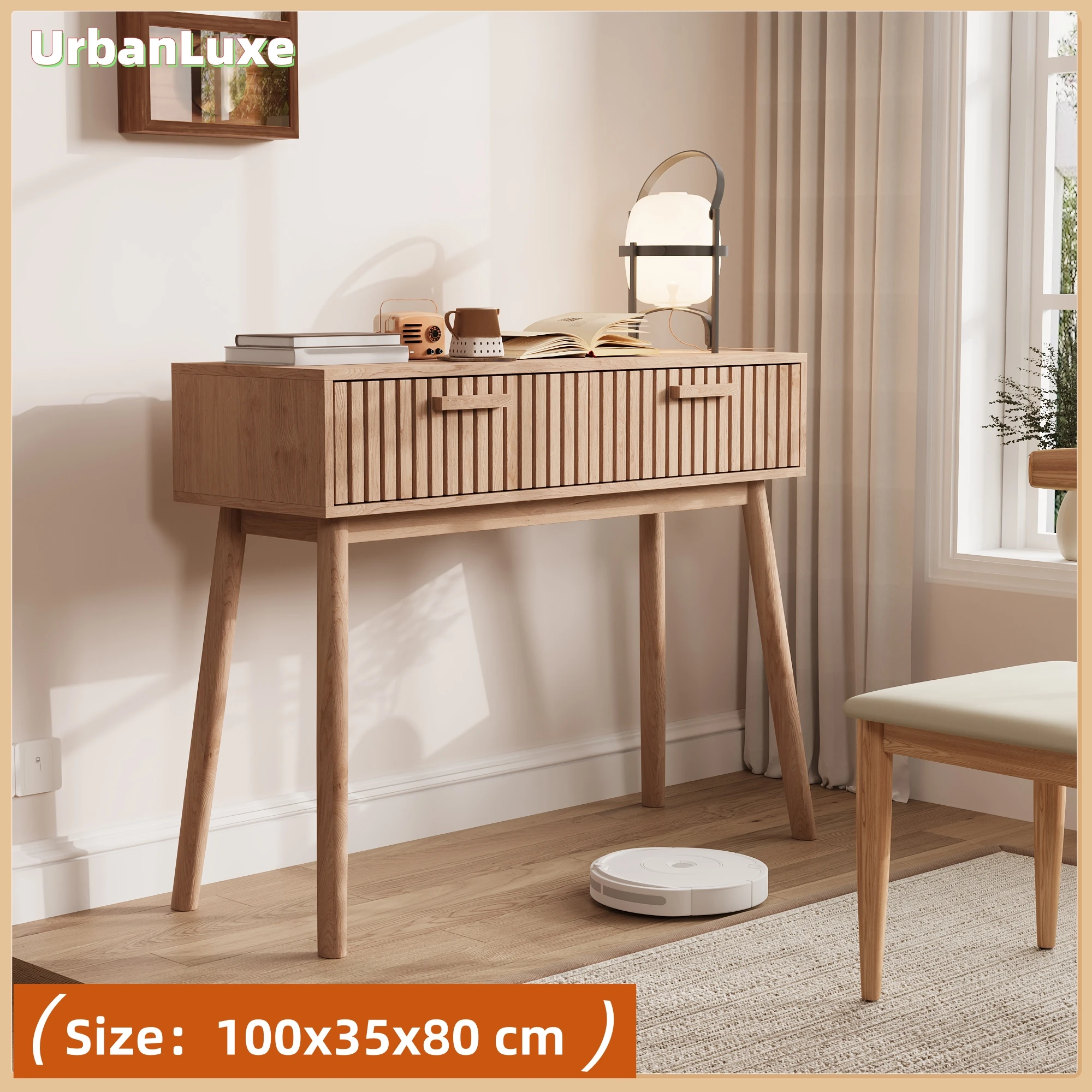 UrbanLuxe Aparador, consola con 2 cajones, estructura de madera maciza, mueble de salón, color madera natural