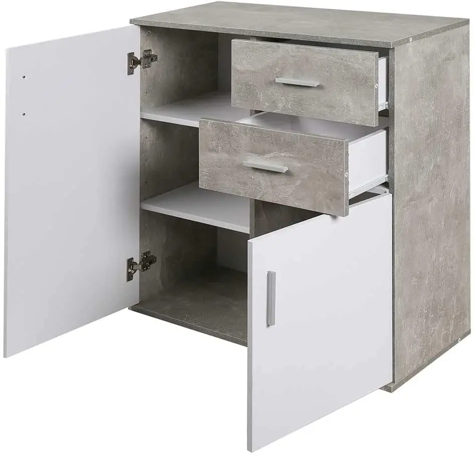 Móvil Madia con 2 Cassetti Doppia Anta e 2 Ripiani Interni Mobiletto Credenza Armadio Multiuso Cucina Bagno Ufficio Desi