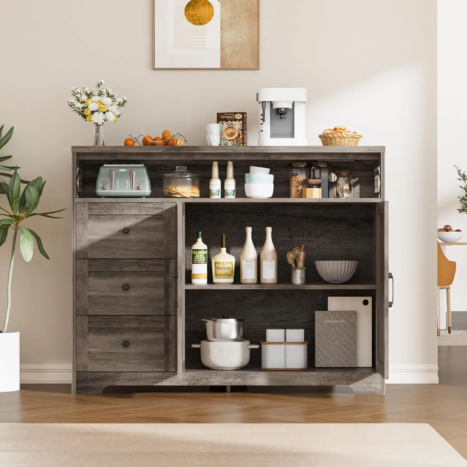 Credenza Cucina,120x35x95cm,Mobile da Cucina con 3 Cassetti e 2 Ante Scorrevoli,Stile Rustico Moderno por Soggiorn