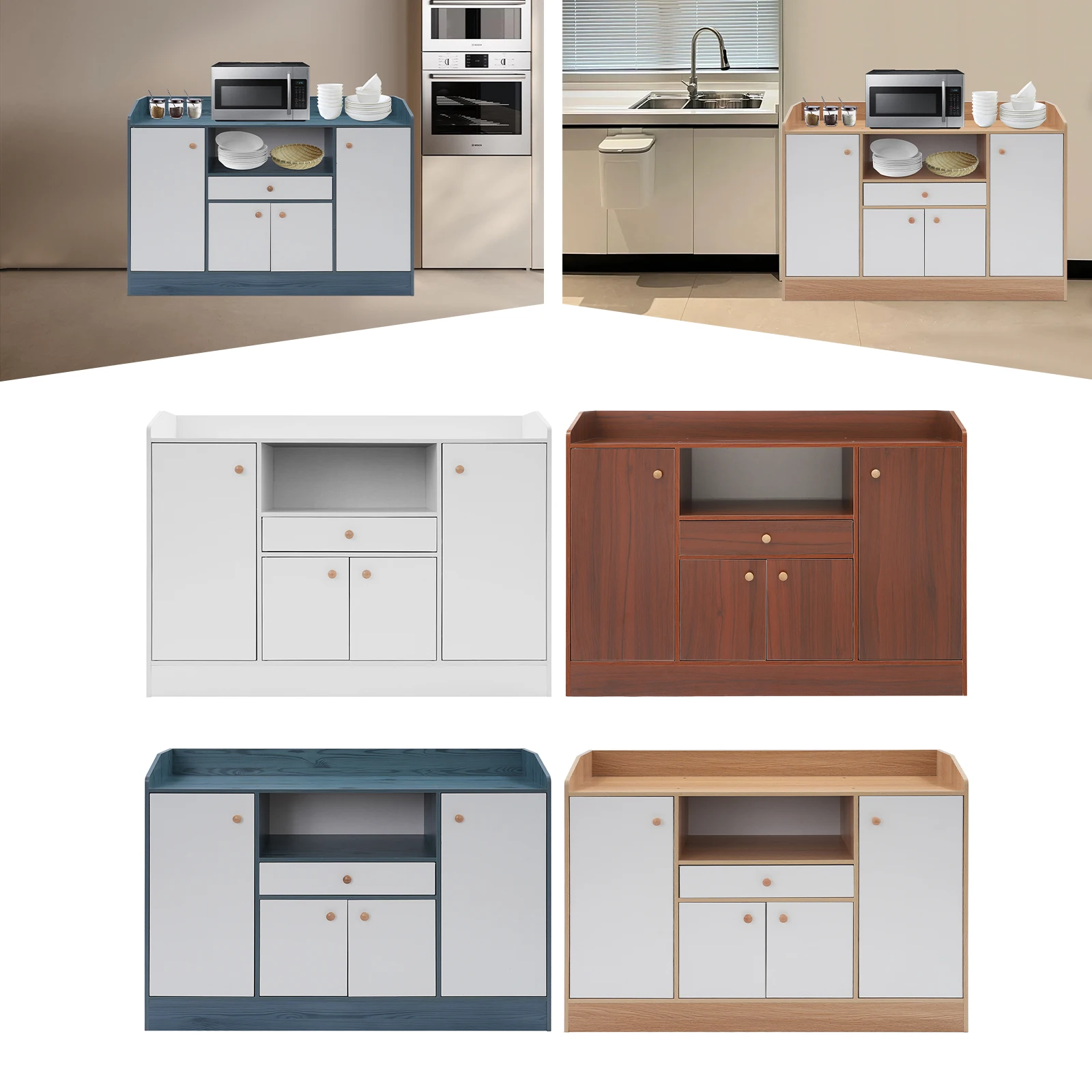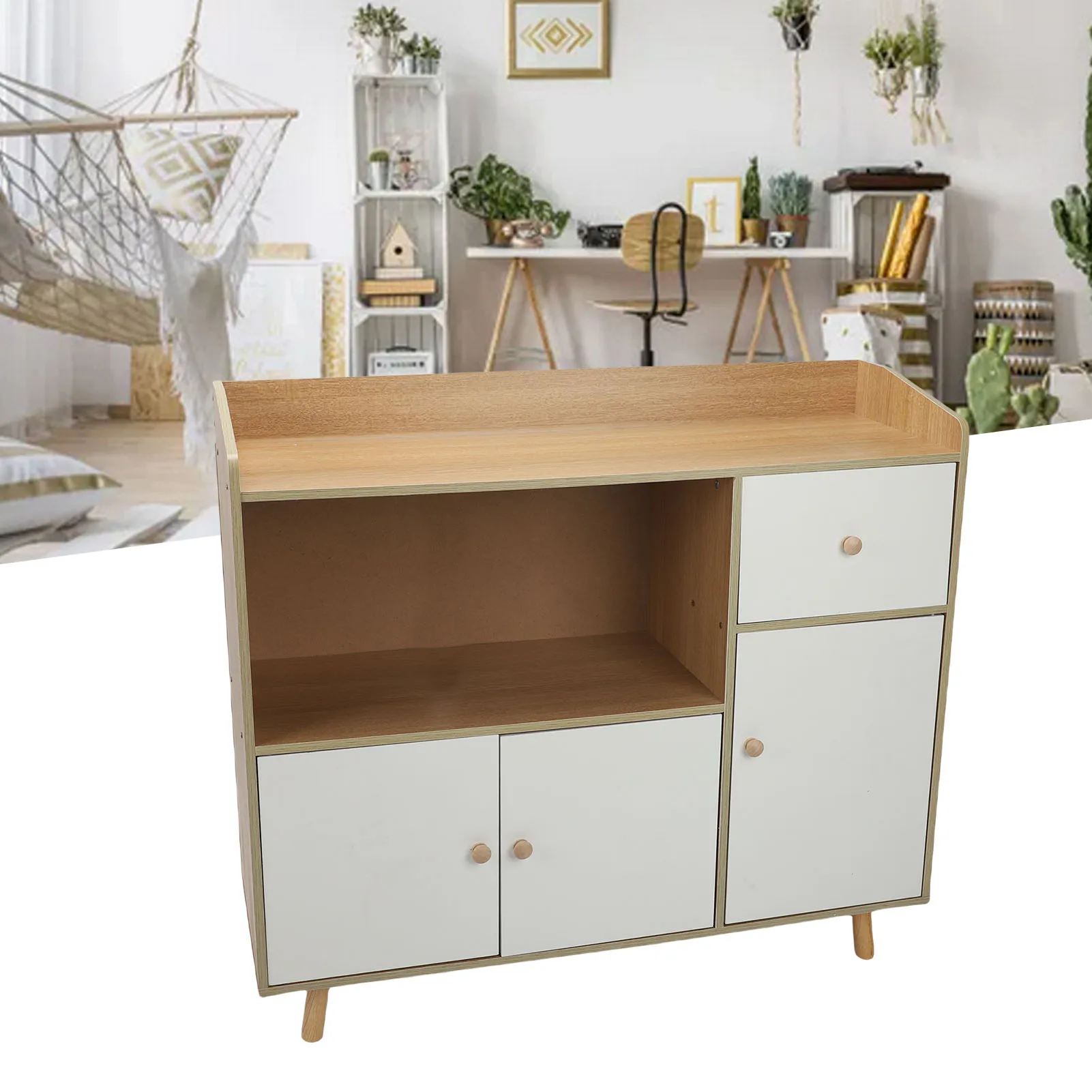 Mueble de madera para té, multifuncional, 3 puertas, 1 cajón, 90x30x82CM, mueble de almacenamiento para utensilios de cocina, botellas, mueble de comedor