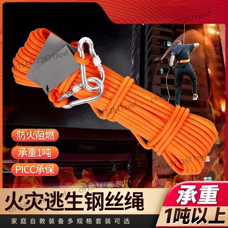 Dispositivo de escape y descenso de gran altura, cuerda de rescate de escape a prueba de fuego para el hogar, rescate de emergencia, seguridad con núcleo de alambre de acero de gran altura