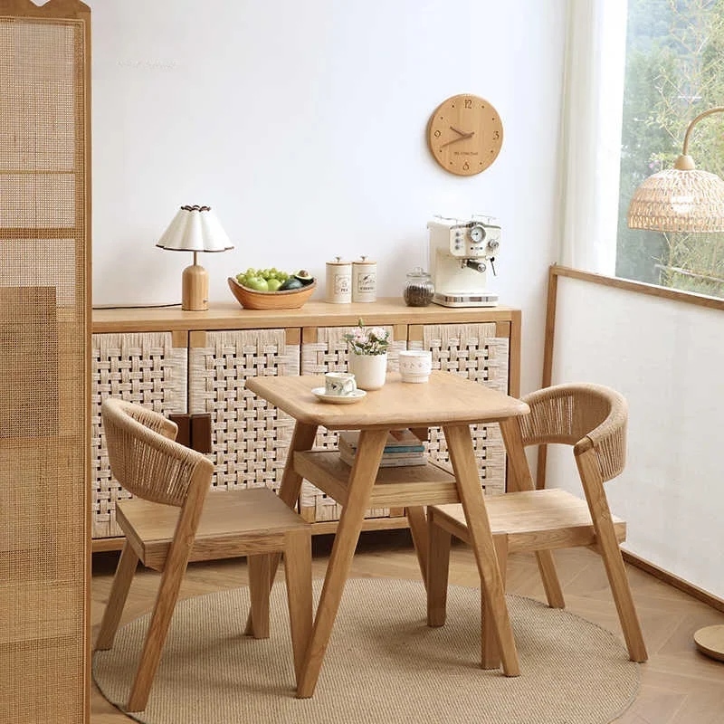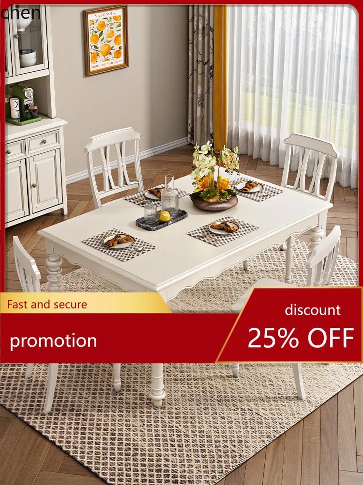 Juego de mesa y sillas de comedor de madera maciza CZ, mesa de comedor rectangular de madera Natural de estilo Vintage Simple para el hogar