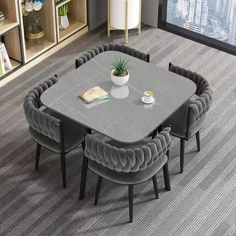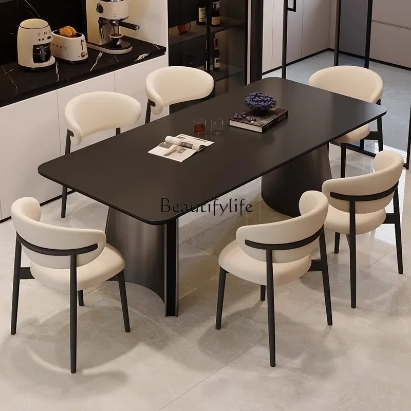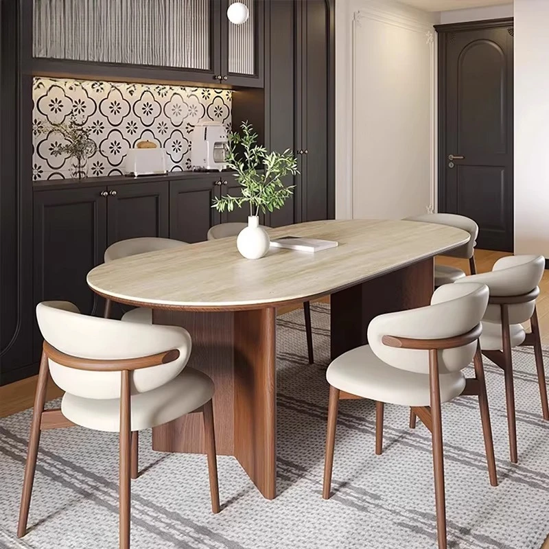 Mesa de comedor de alta gama de diseño moderno francés con silla de bambú de pizarra de travertino ovalada medio antigua muebles para el hogar de madera maciza