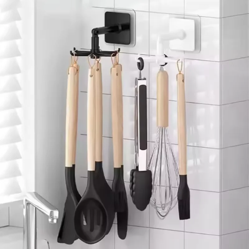 5/10 Uds gancho giratorio multifunción de 7 garras 360 ° Gancho sin perforaciones sin costuras, gancho de almacenamiento de cocina, ganchos de baño autoadhesivos