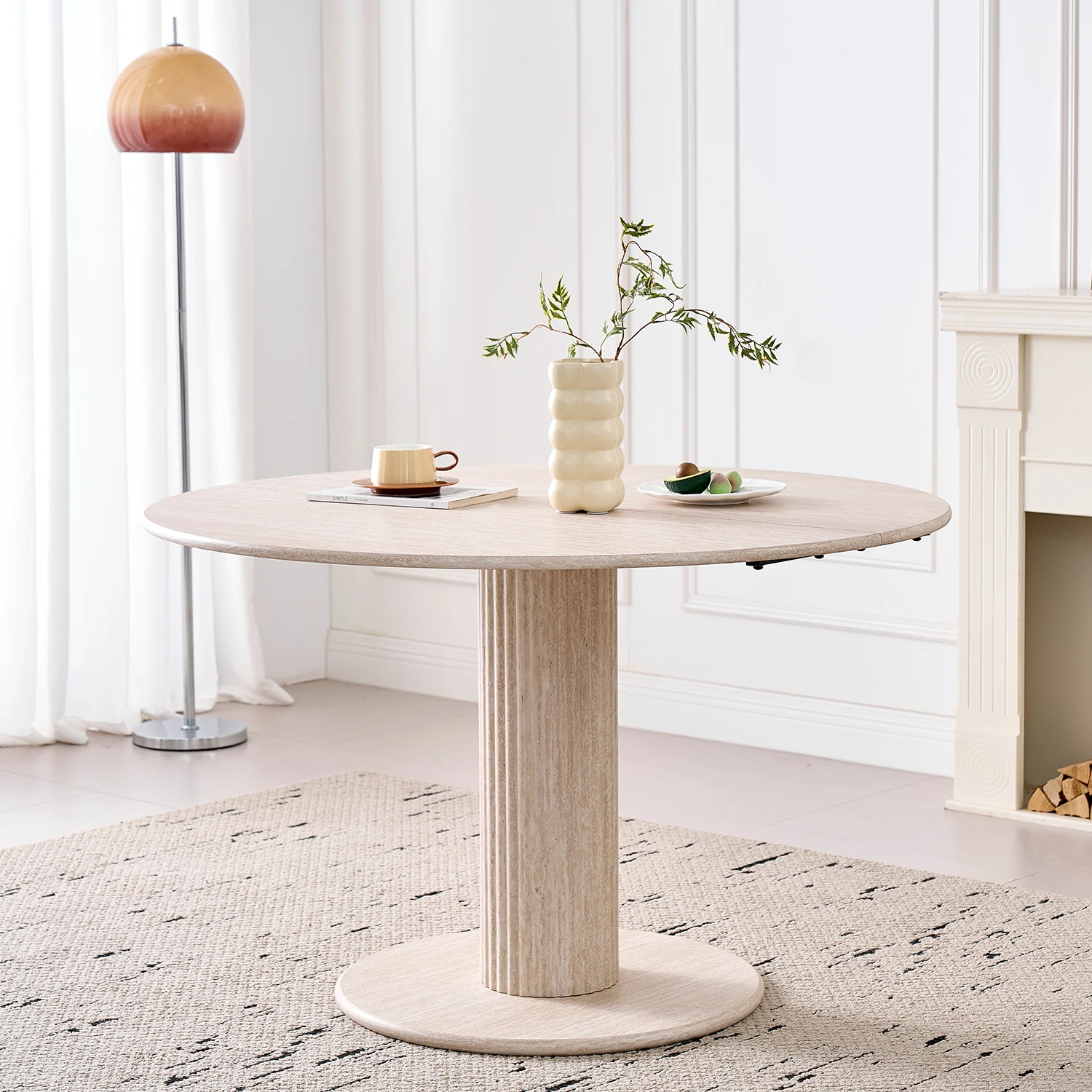 Mesa de comedor redonda simple y moderna, mesa de comedor con base estable de madera maciza para 4-6 personas, adecuada para dormitorio/sala de estar