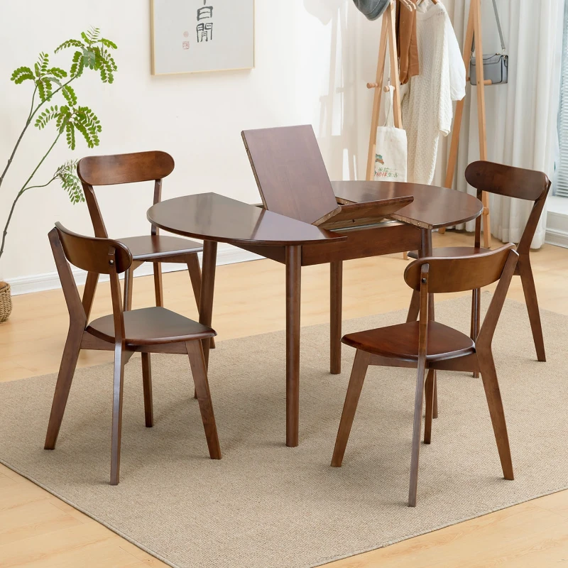 Mesa redonda plegable de madera maciza personalizable, combinación retráctil, mesa redonda pequeña nórdica cuadrada y redonda de doble uso