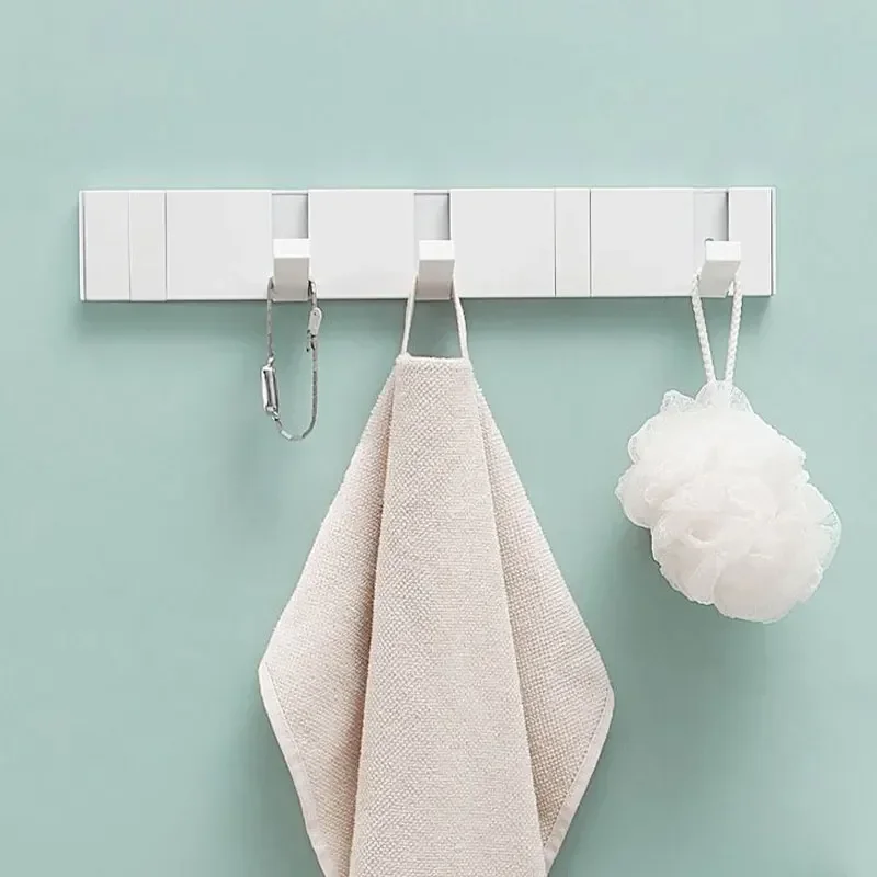 Perchero plegable de acero detrás de la puerta, ganchos, organizador de ropa multiusos, colgador de pared para baño, almacenamiento de llaves, toallero