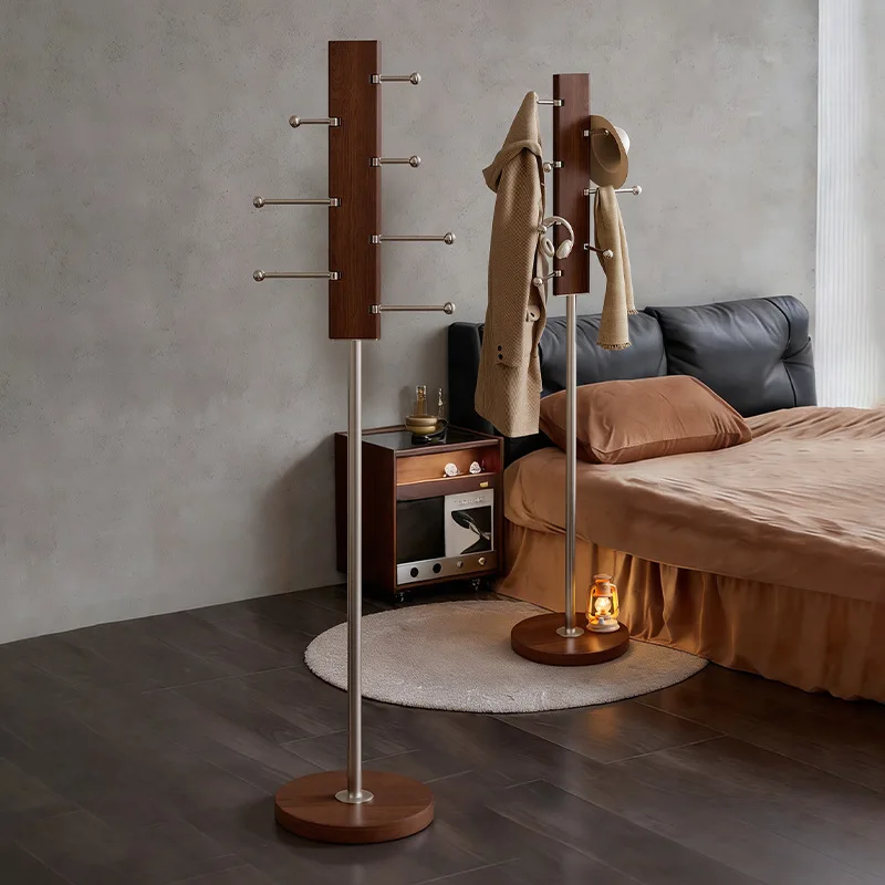Nuevo perchero de suelo de madera maciza y acero inoxidable, perchero de lujo ligero para dormitorio y hogar, base de madera maciza, perchero para guardar ropa