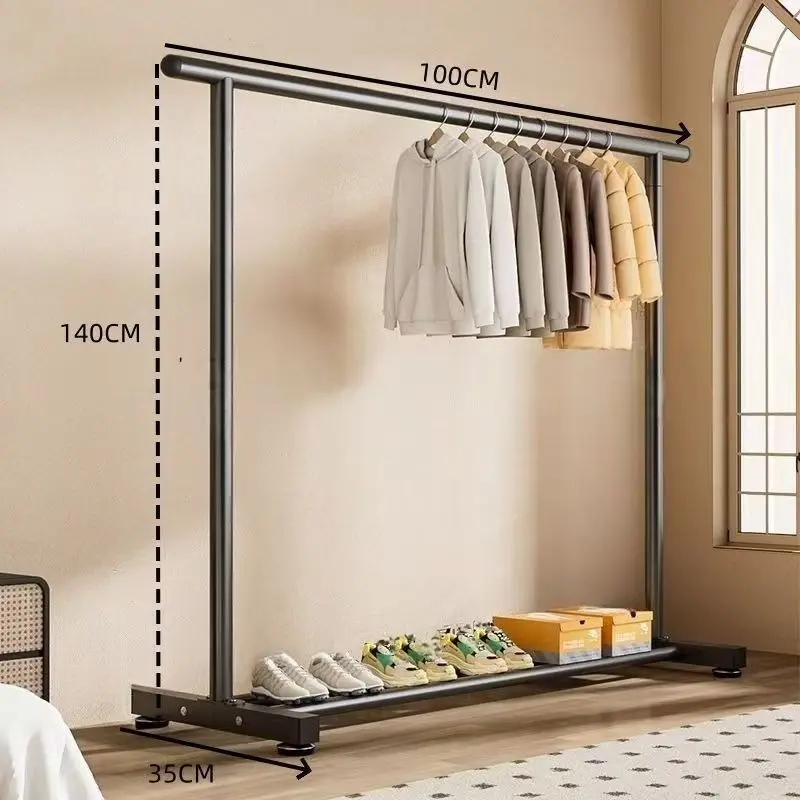 Perchero de doble varilla, colgador de ropa de pie, estante de ropa Simple móvil, estante de almacenamiento para dormitorio, organizador de armario ensamblado