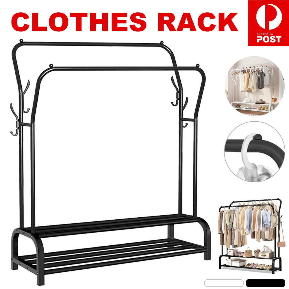 Perchero de doble varilla para ropa, Zapatero multicapa, perchero para ropa con ganchos, organizador de ropa colgante para dormitorio