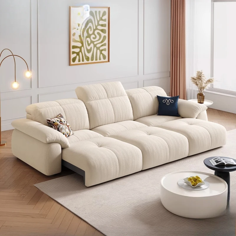 Sofá Extensible Blanco Nórdico Moderno de Terciopelo Italiano, Sofás Dobles Plegables Eléctricos de Lujo para Sala de Estar, Puffs, Muebles Divani