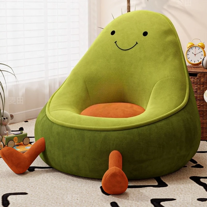 Sofá infantil con diseño de aguacate de dibujos animados, sillón puf individual cómodo y suave para dormitorio pequeño, muebles para sala de estar