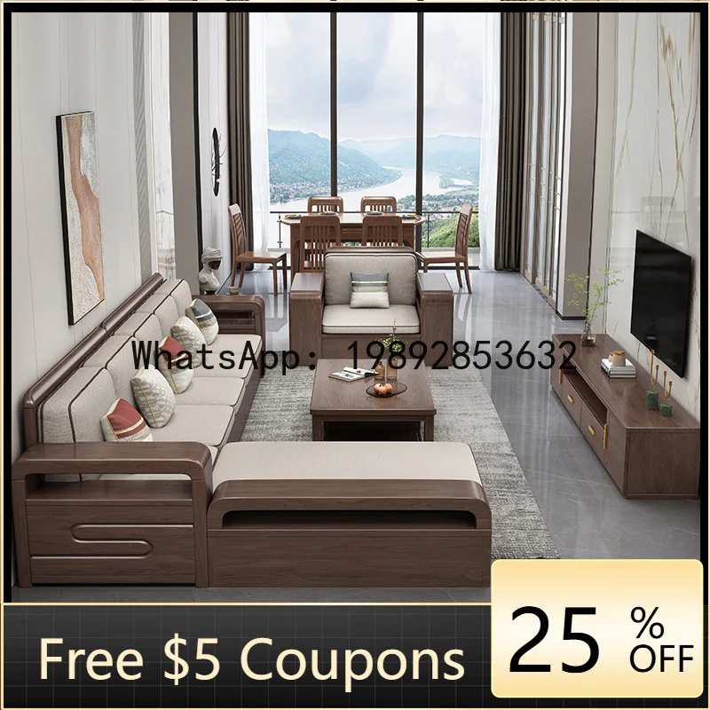 Juego de Sofá de Madera Maciza Z3 para Espacios Pequeños, Estilo Moderno Minimalista, Doble Uso para Invierno y Verano, Madera de Nogal con Almacenamiento