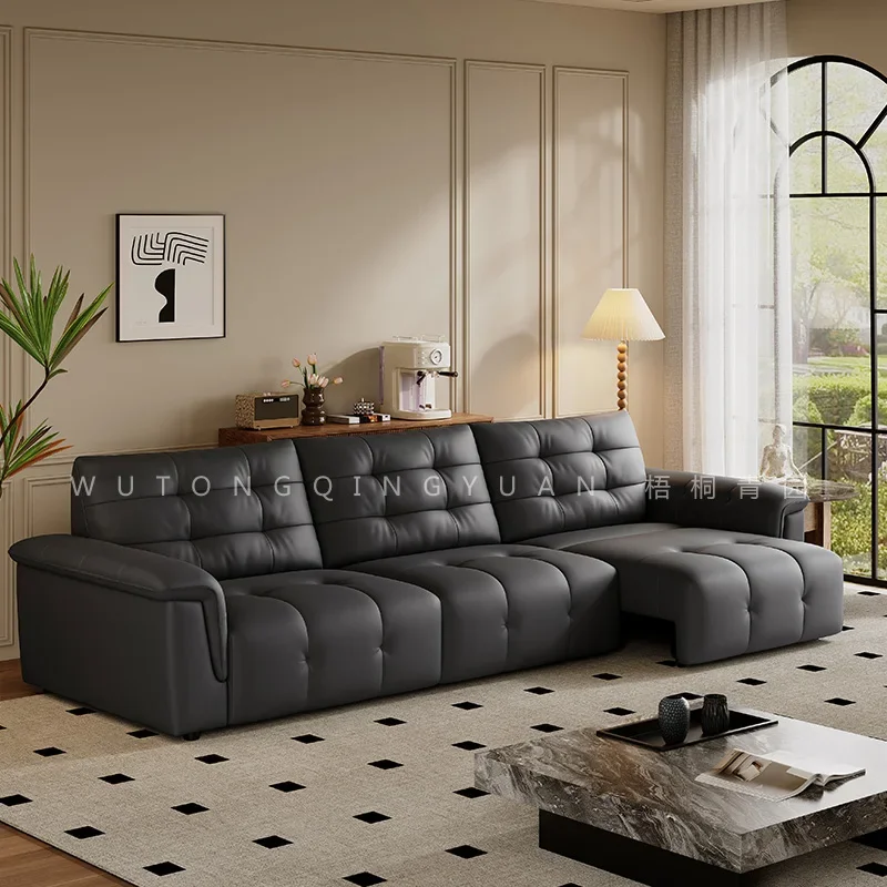 Sofá italiano de cuero genuino para sala de estar, sofá minimalista de diseño de lujo, Muebles familiares modernos, accesorios para el hogar