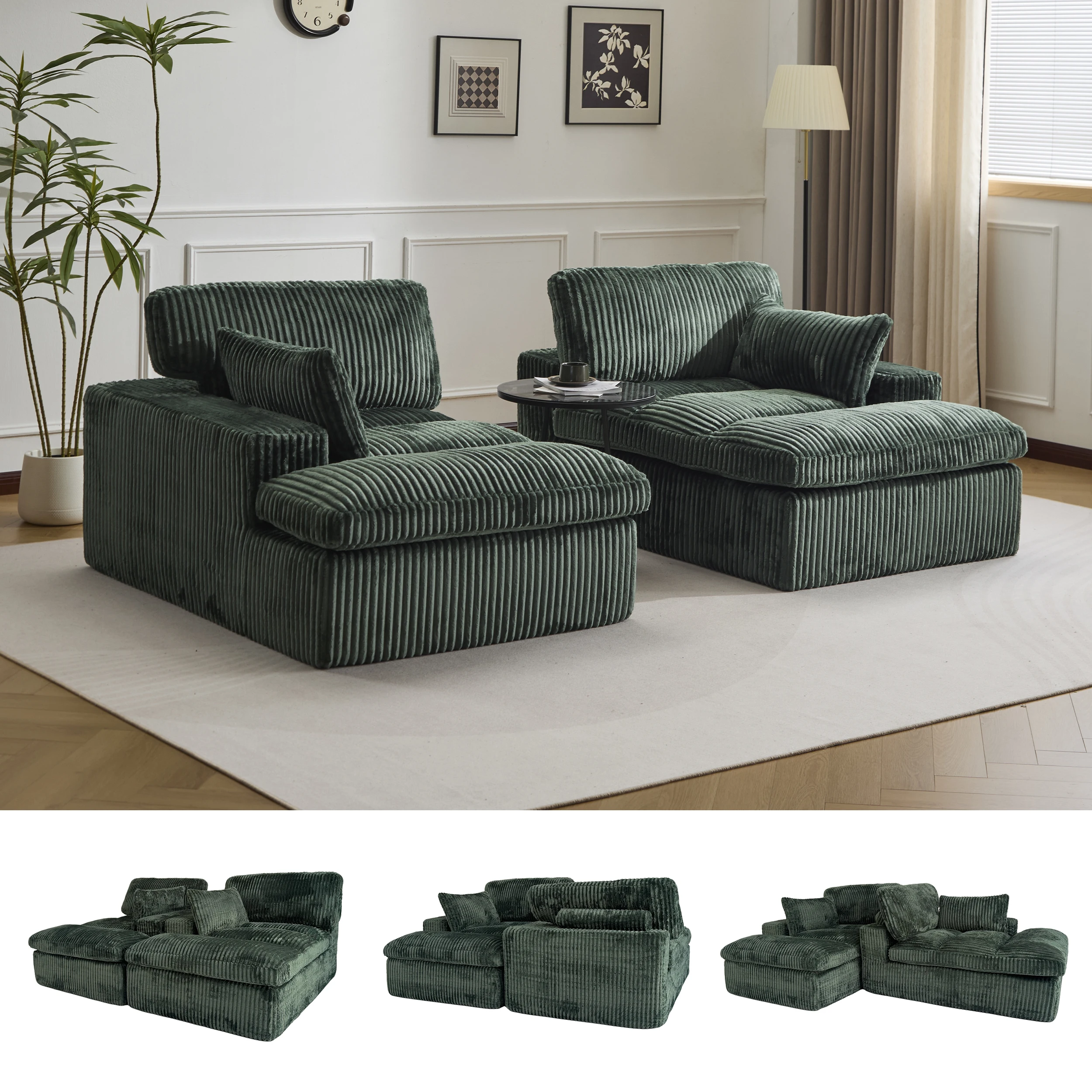 Sofá modular deshuesado de 4 plazas con longitud de silla en forma de U, sofá nube de pana acolchado cómodo para sala de estar, diseño antideslizante