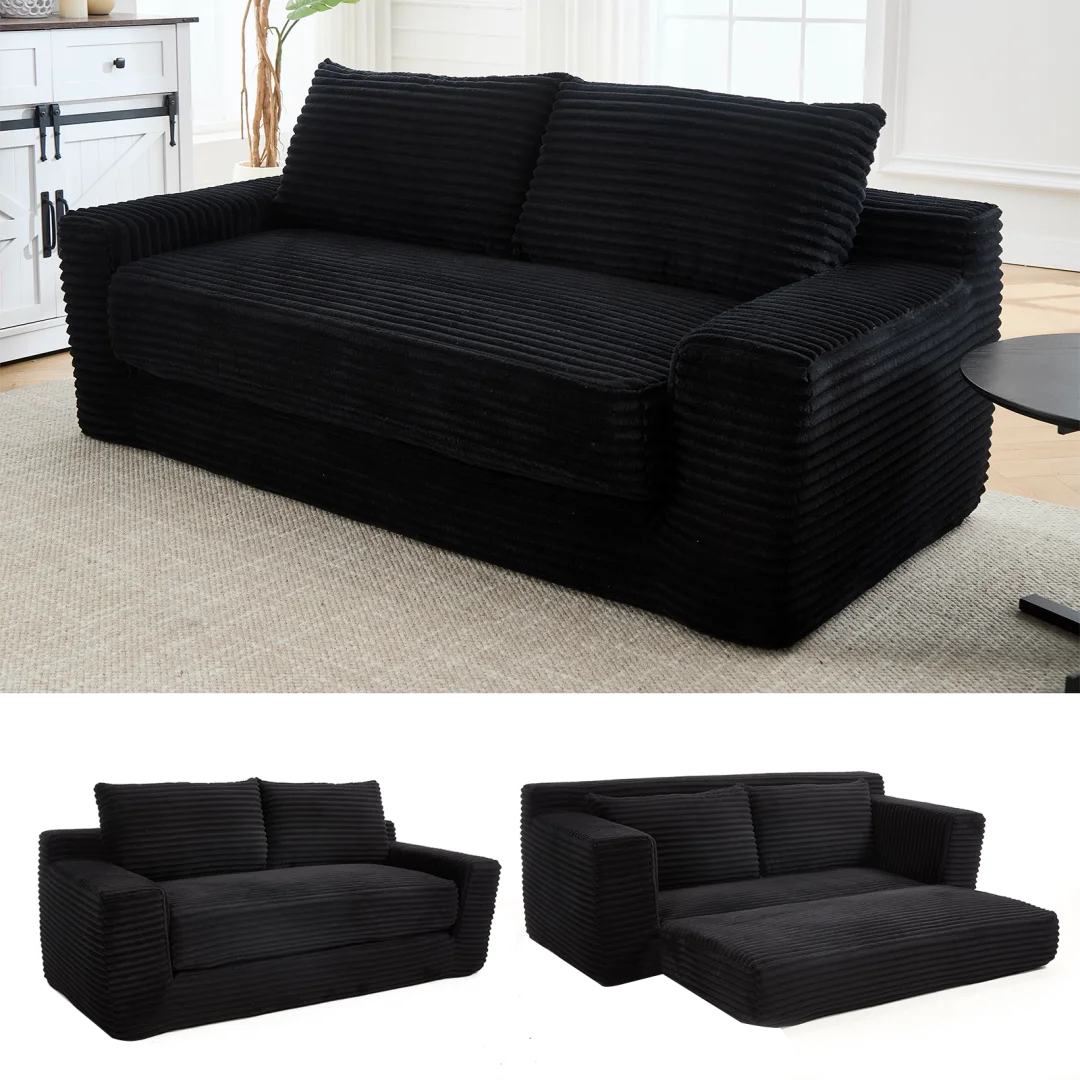 Elegante Sofá Cama de Pana, Sofá Cama Moderno sin Necesidad de Montaje, Sofá Cama para Sala de Estar, Oficina y Apartamento
