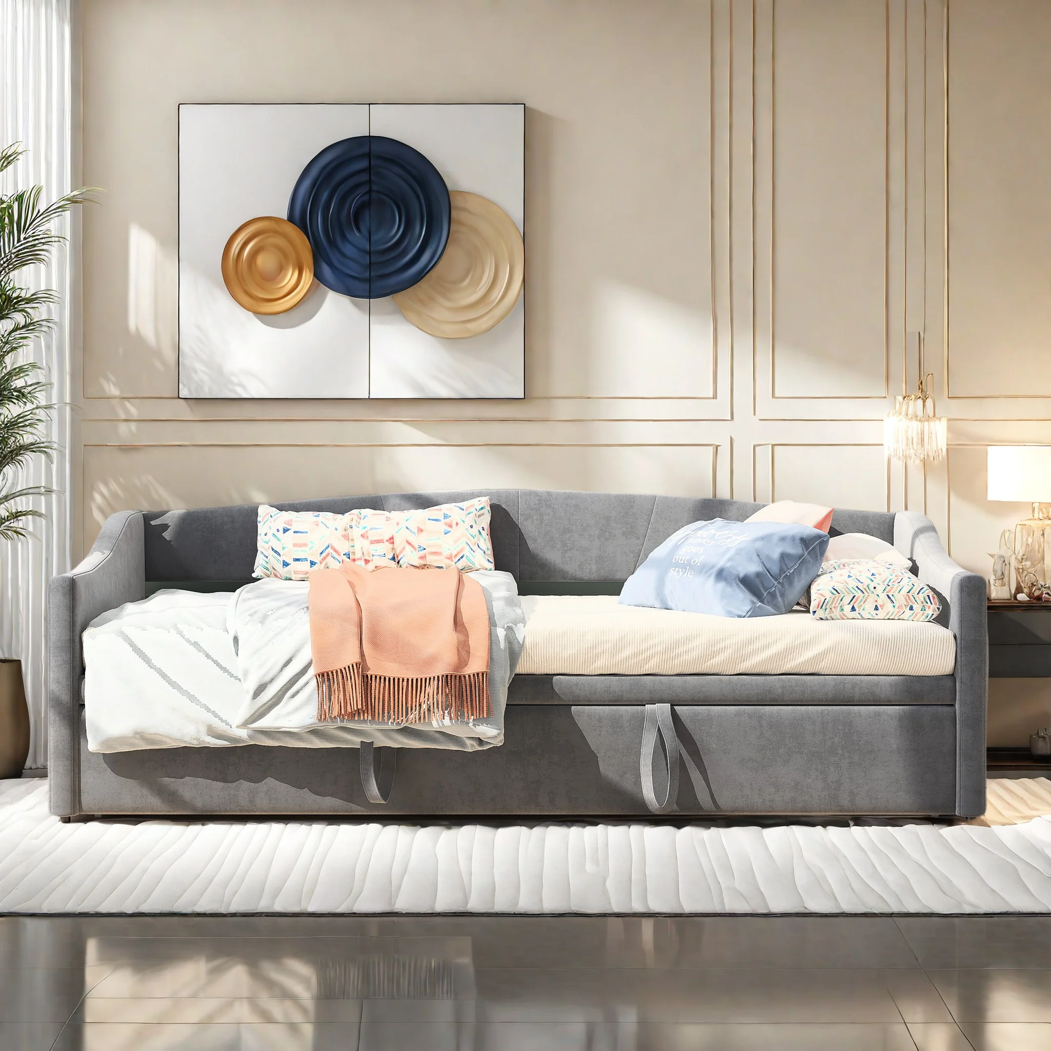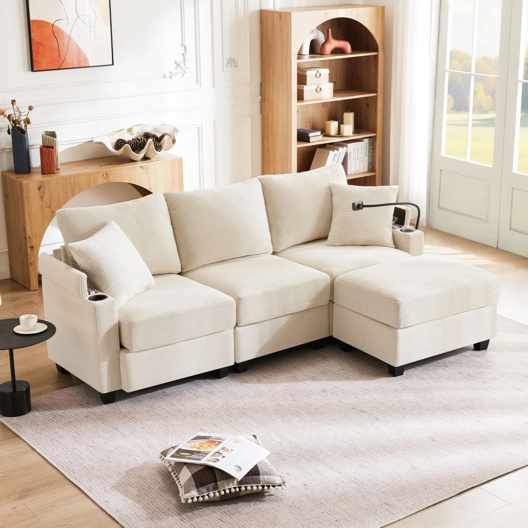 Sofá en forma de L de estilo combinado, lujoso conjunto de sofá para el suelo, sofá para dormitorio relleno de espuma, conjunto combinable de 4 piezas.