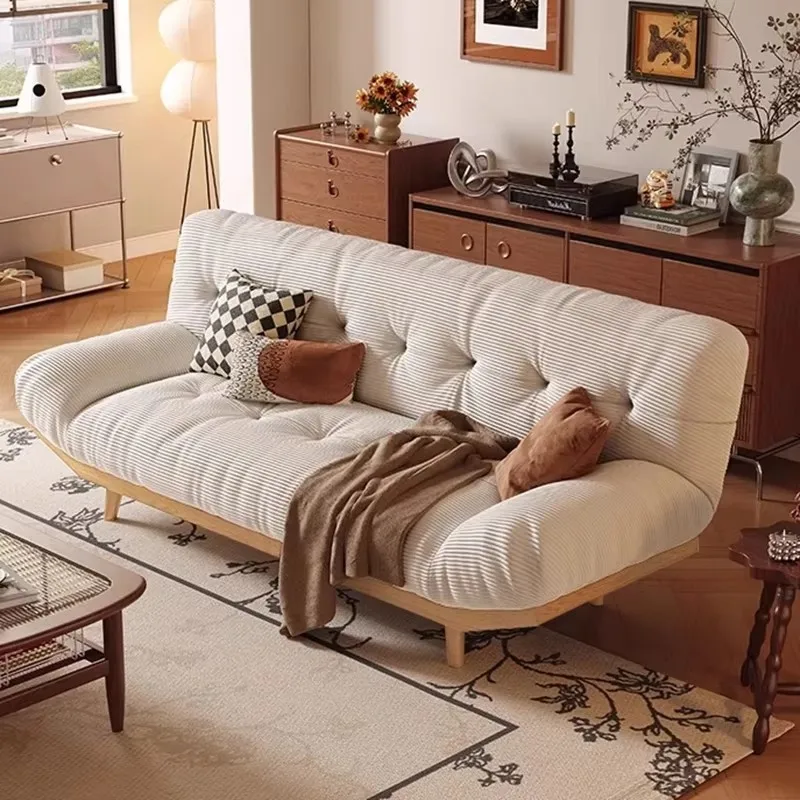 Sala de estar, sofá de viento color crema, sala de estar, apartamento pequeño, sofá de fila recta de tela moderna, muebles nórdicos bancarios para tres personas