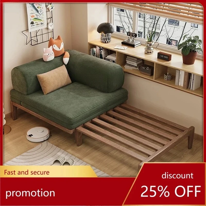 Sofá cama de madera maciza plegable para sentarse y dormir, multifuncional para dormitorio, estudio, balcón, cama individual extraíble y retráctil
