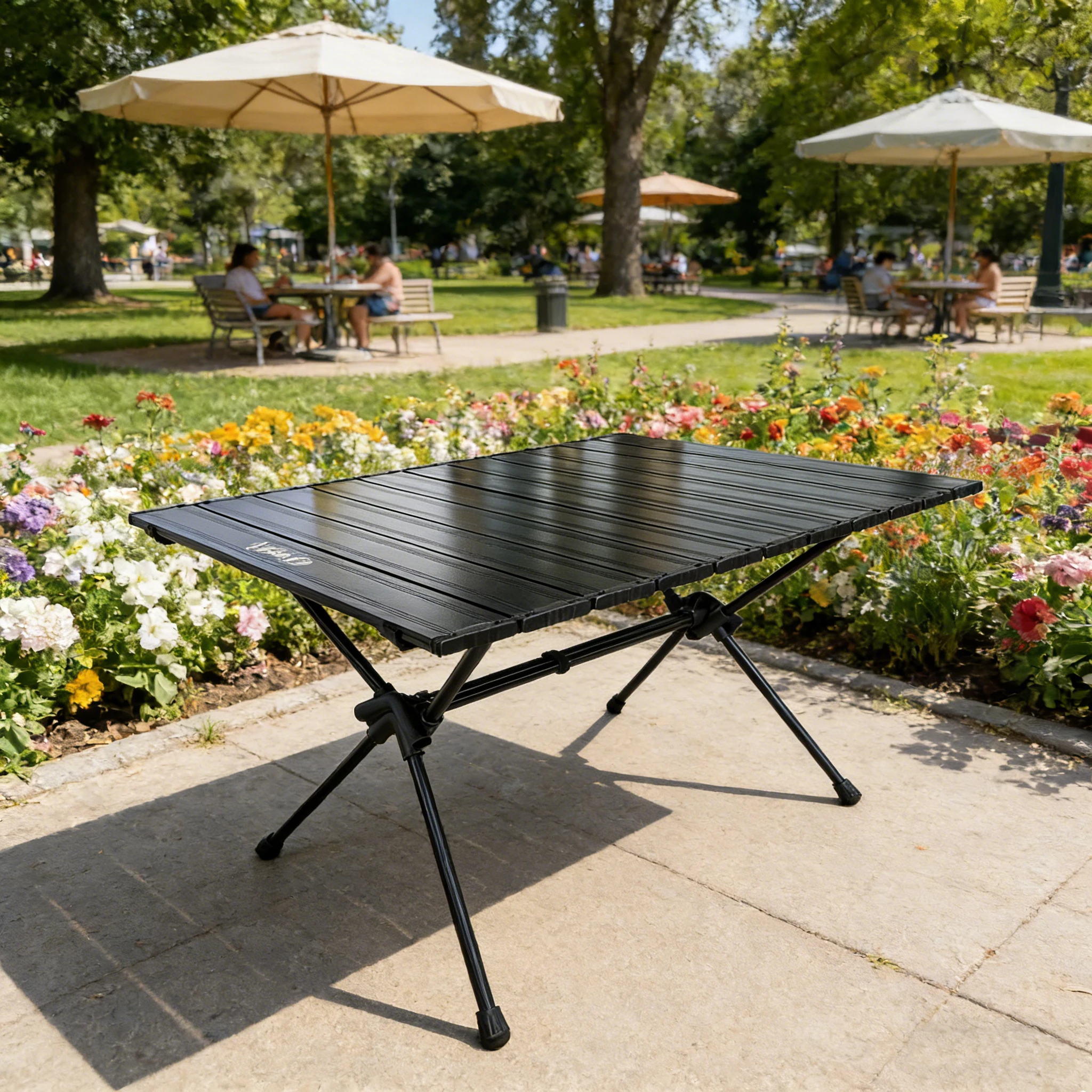 Mesa de picnic plegable de 120 cm, mesa de camping portátil grande de aleación de aluminio para jardín al aire libre, playa, barbacoa, pesca y parque
