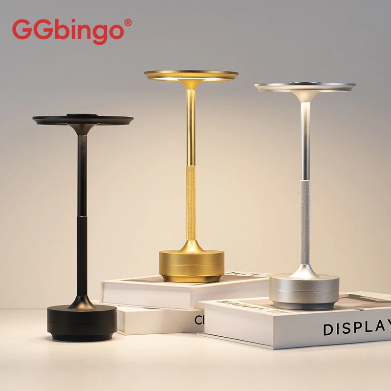 Lámpara de Mesa Recargable de Aleación para Dormitorio, Lámpara Táctil Inalámbrica, Lámpara de Camping, Lámpara de Escritorio Creativa, Carga USB-C, 1800mAh