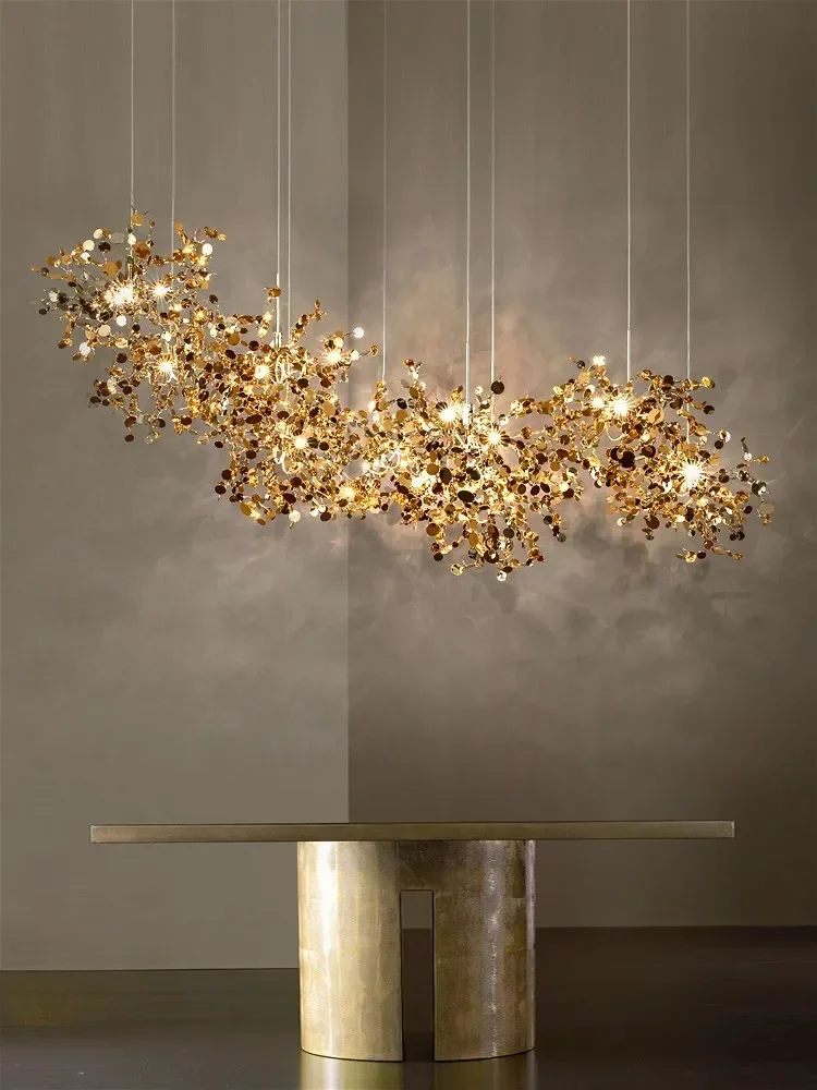 Chandrlier LED de hoja cromada de acero inoxidable creativo moderno, lámpara colgante para sala de estar, restaurante, ventana de exhibición, decoración de Bar, iluminación