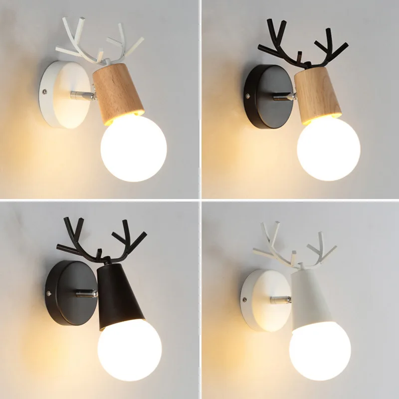 Lámpara de pared nórdica de estilo popular, para pared de fondo de sala de estar, pasillo, arte de madera con forma de asta de ciervo, arte de hierro, creativa, moderna y sencilla