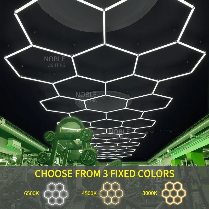 La lámpara LED hexagonal de panal de 6500K es adecuada para taller de reparación de garaje, gimnasio, barbería, supermercado.