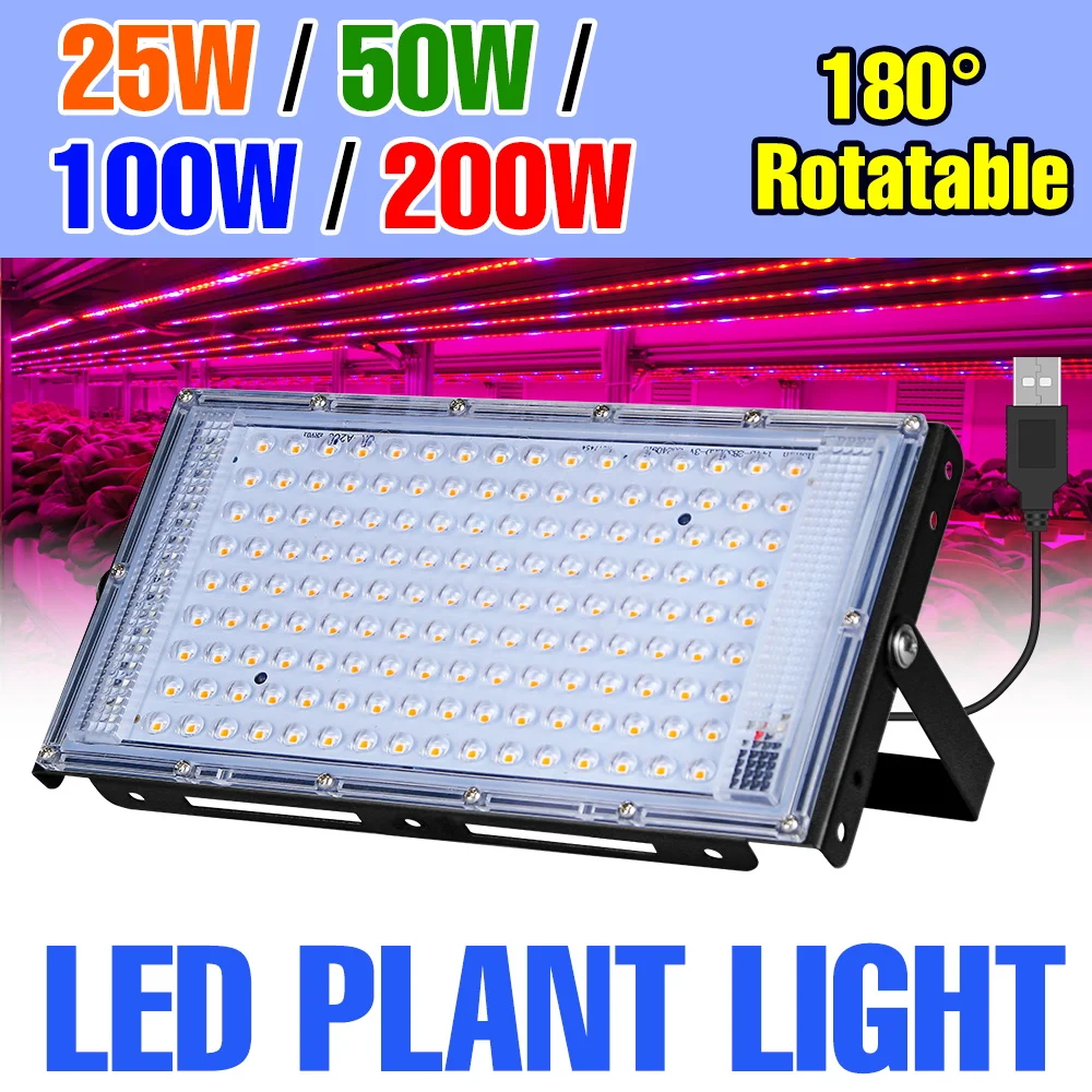 Lámpara LED de Cultivo de 200W USB DC5V, Espectro Completo, para Plantas Hidropónicas, Impermeable, para Cultivo de Frutas, Invernadero, Verduras y Cactus