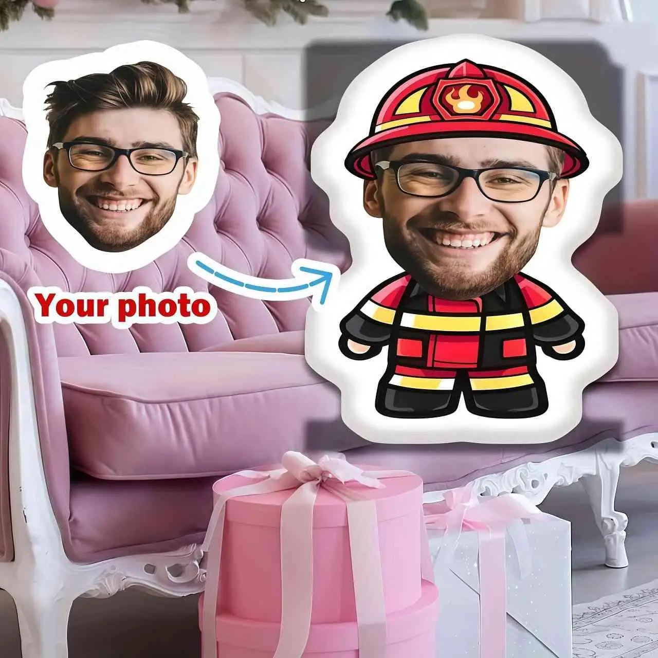 Almohada con foto personalizada estilo bombero con nueva creatividad, se puede dar como regalo sorpresa para familiares, amigos, amantes, etc.,
