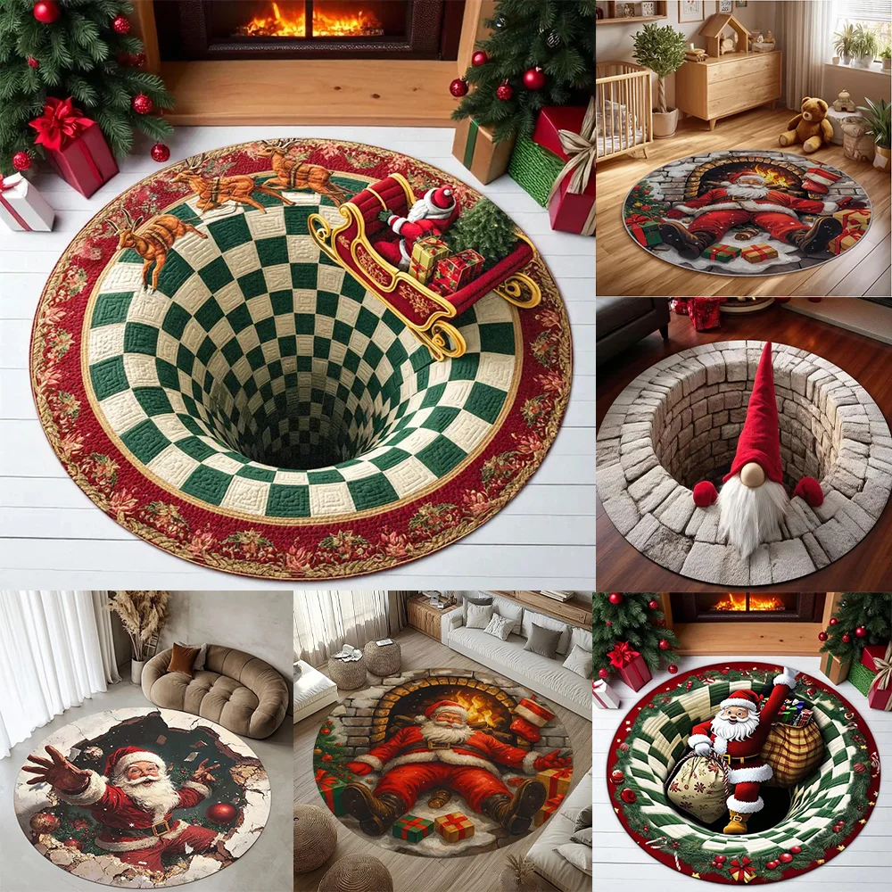 Alfombra Circular de Papá Noel con vórtice 3D para montar en un tren pequeño, alfombra con tema navideño de ilusión Visual, alfombra antideslizante para dormitorio