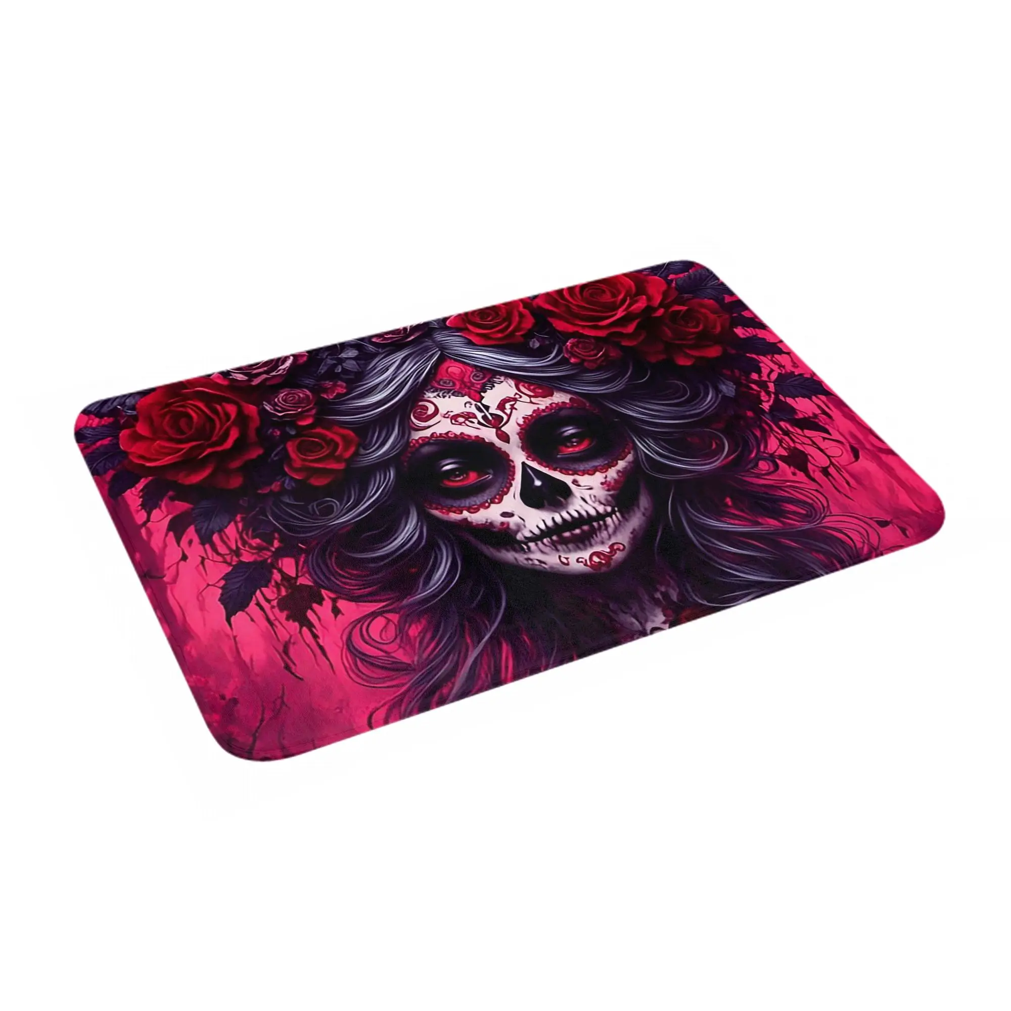 Alfombra antideslizante con diseño de calavera de azúcar del Día de Muertos, estilo Catrina mexicana, para cocina, entrada, hogar