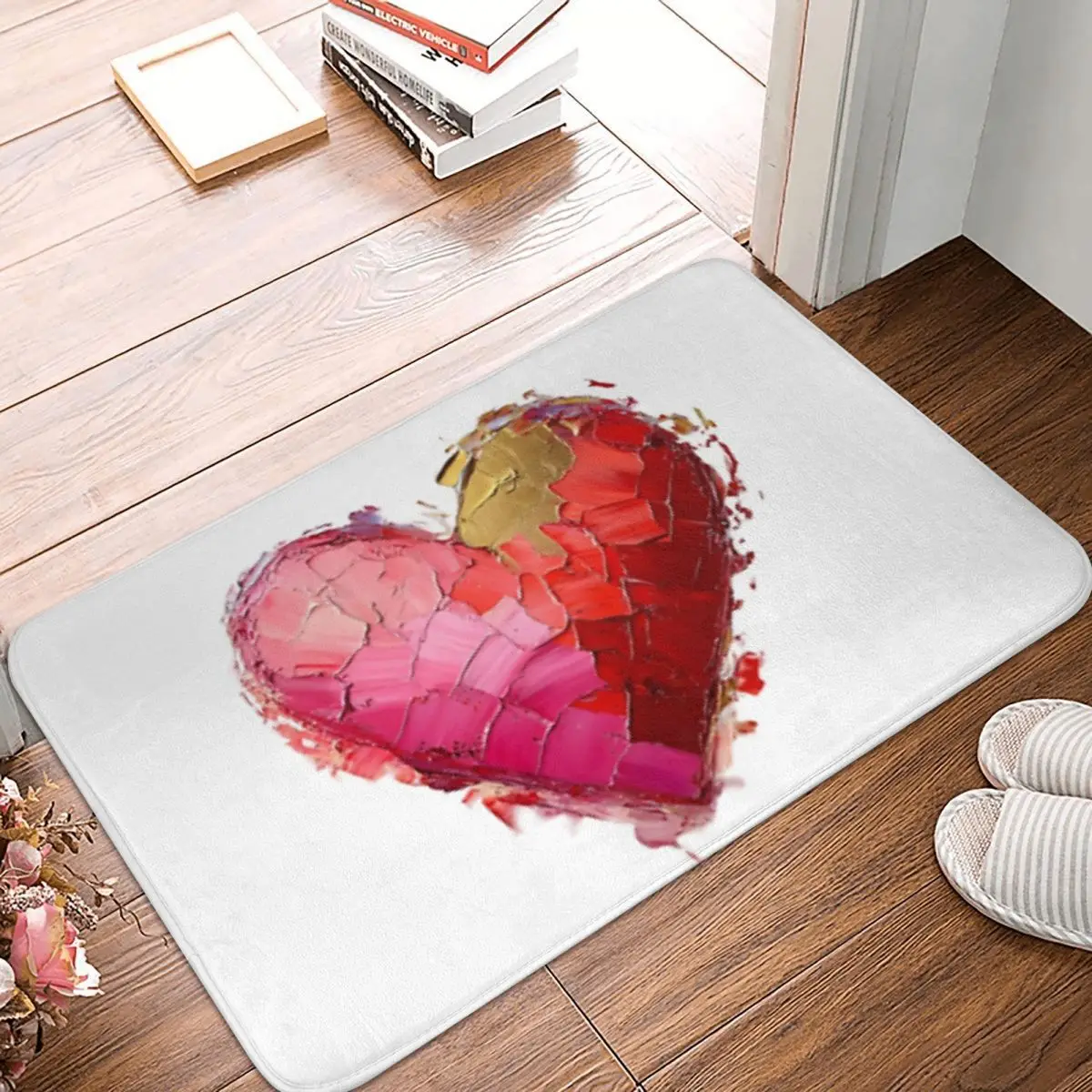 Corazón en pintura al óleo, alfombra, felpudo, alfombra de baño